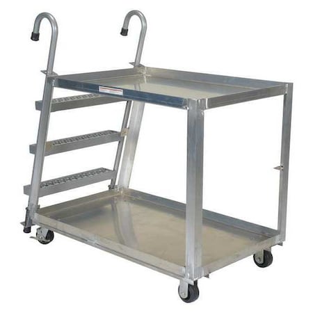 Vestil SPA2-2848 Aluminum Stock Picker with Step Ladder and 2" Lipped Shelves, 2 Shelves, 660 lbs Load Capacity, 35-5/8" Height, 48" Length x 28" Width