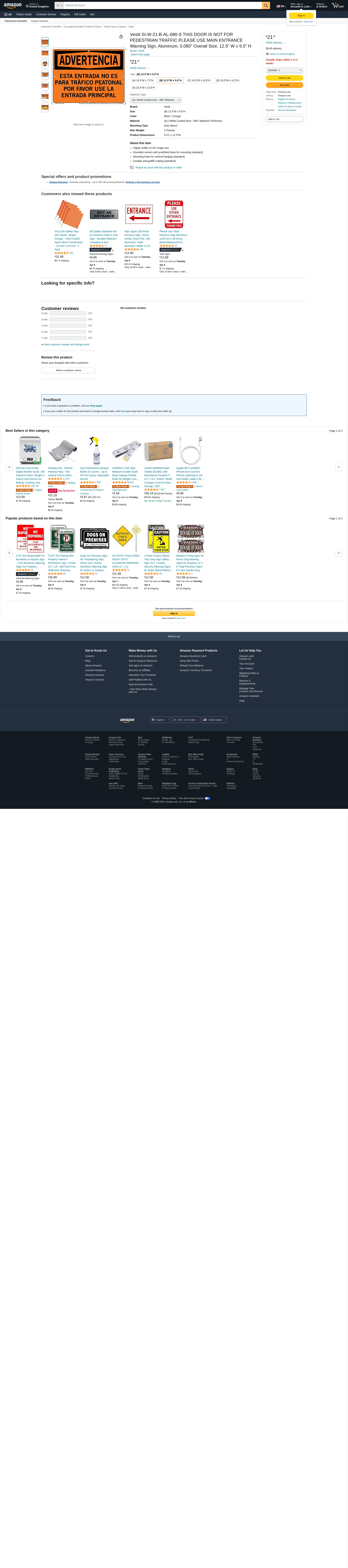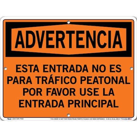 Vestil SI-W-21-B-AL-080-S THIS DOOR IS NOT FOR PEDESTRIAN TRAFFIC PLEASE USE MAIN ENTRANCE Warning Sign, Aluminum, 0.080" Overall Size, 12.5" W x 9.5" H