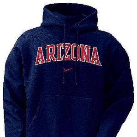 Cotton hooded sweatshirt by Nike. Has ARIZONA done in tackle twill above and embroidered Nike swoosh on chest.