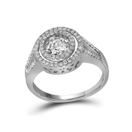<ul> <li>Solid 10kt White Gold</li> <li>5/8 Carats total weight --- 1/4 carat center solitaire</li> <li>Total Metal Weight: 3.01 grams (approximately)</li> <li>Ring size selectable. All diamonds are natural and conflict-free in origin.</li> </ul>