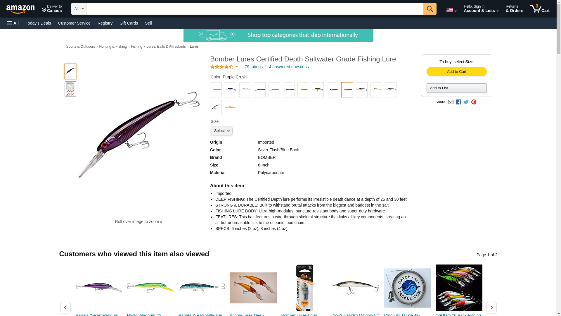 <br /> <b>Bomber Saltwater A-Salt CD30 Fishing Lure, Purple Crush:</b> <ul> <li>Length: 8"</li> <li>Weight: 4 oz</li> <li>Model #BSWCD30326</li> </ul>