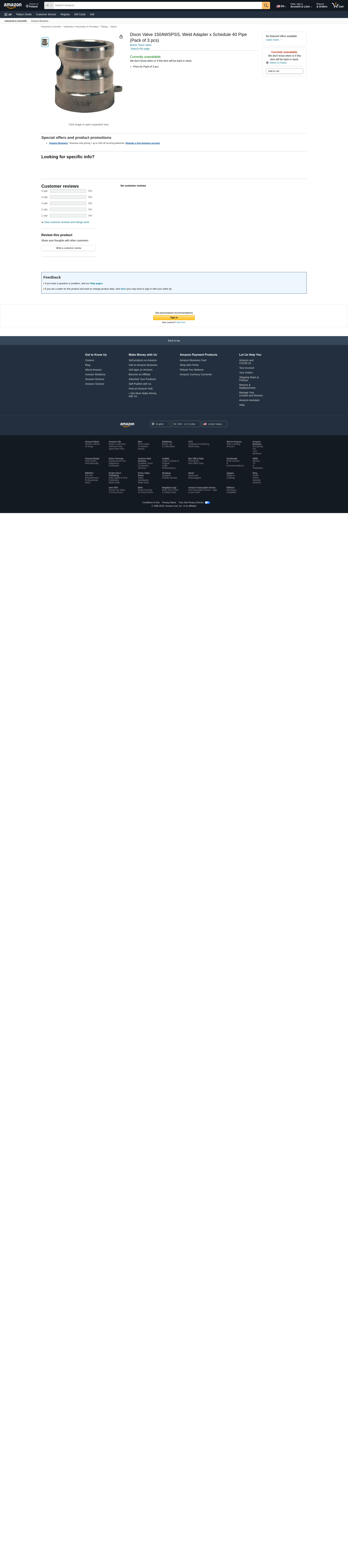 Order 150AWSPSS by Dixon Valve Weld Adapter x Schedule 40 Pipe - US Mega Store