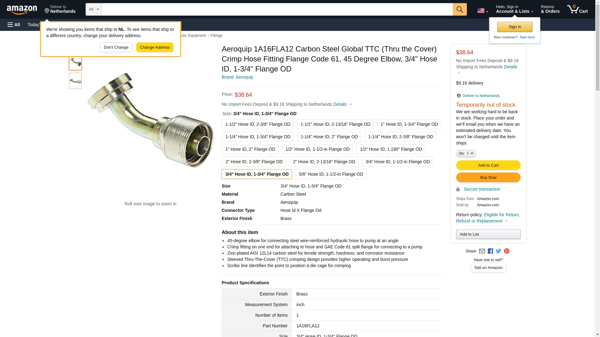 Aeroquip 1A16FLA12 Carbon Steel Global TTC (Thru the Cover) Crimp Hose Fitting Flange Code 61, 45 Degree Elbow, 3/4" Hose ID, 1-3/4" Flange OD