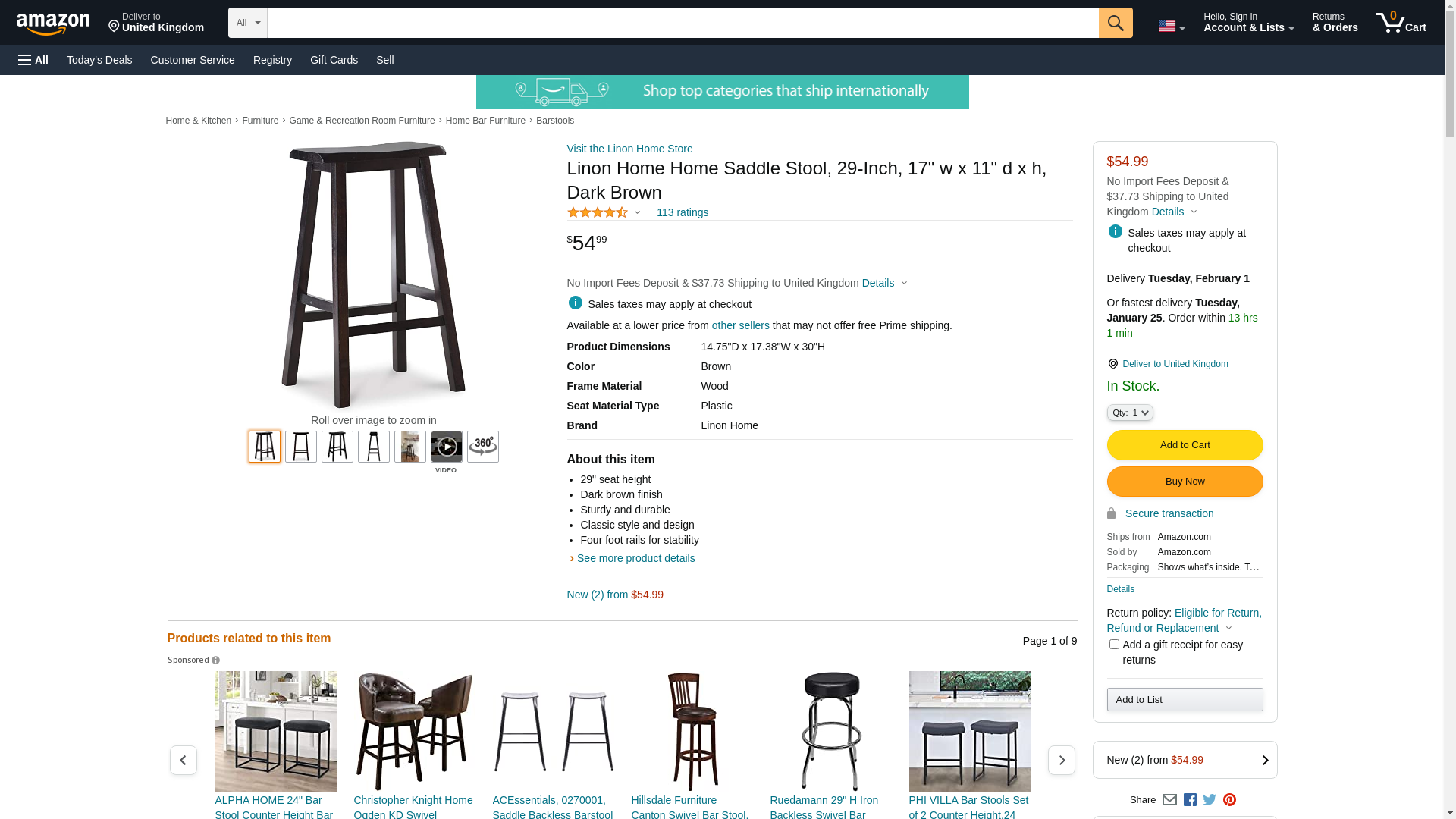 Linon Home Home Saddle Stool, 29-Inch, 17" w x 11" d x h, Dark Brown, Bar Height