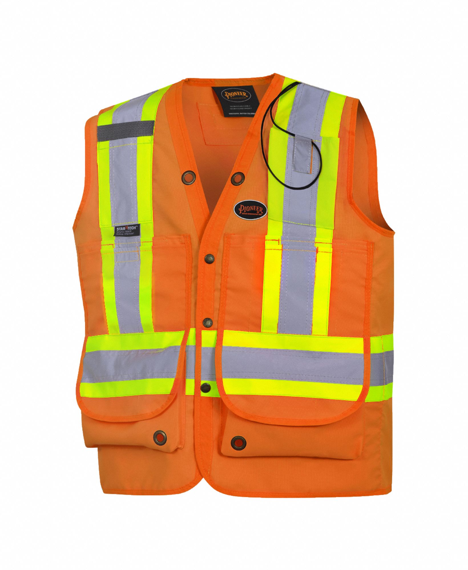 Pioneer Heavy-Duty Hi Vis Surveyor Safety Vest, 12 Pockets, Radio Strap, Orange, S, V1010350-S