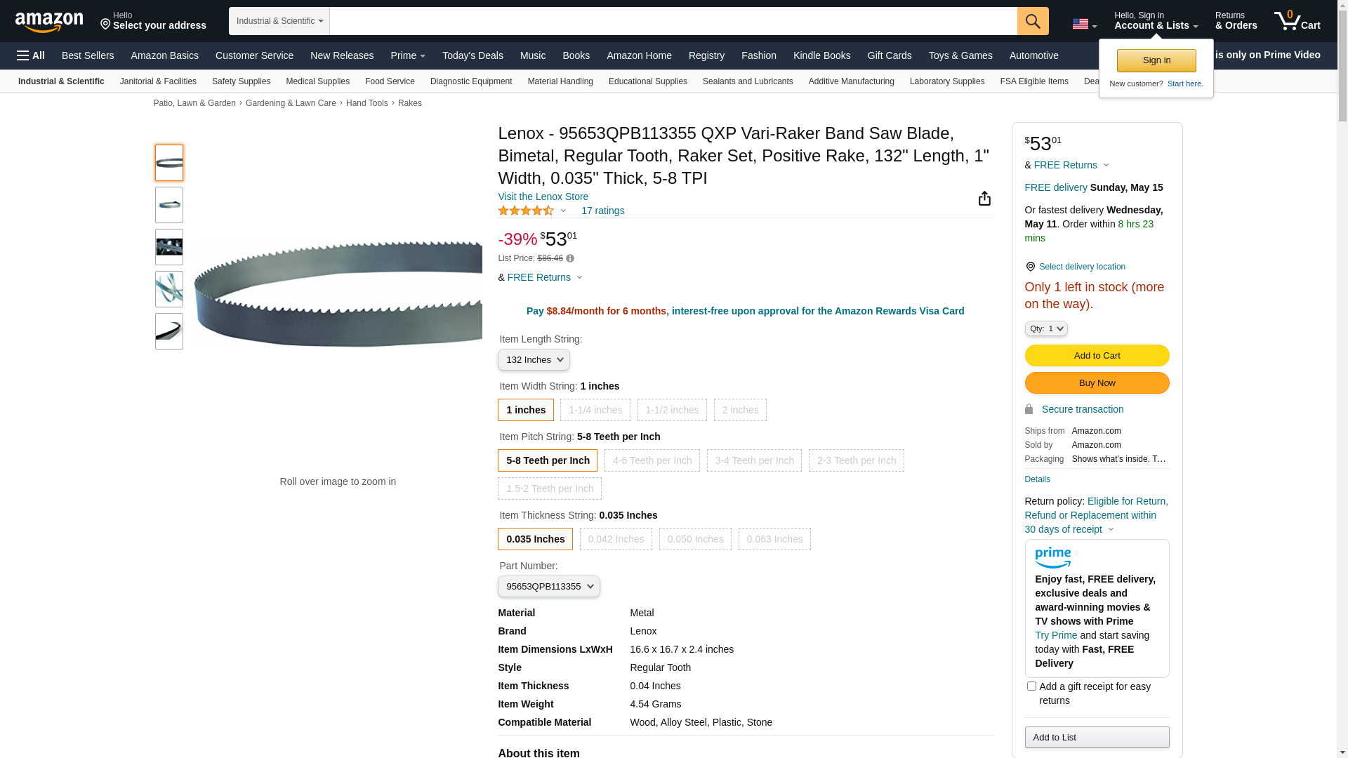 Lenox - 95653QPB113355 QXP Vari-Raker Band Saw Blade, Bimetal, Regular Tooth, Raker Set, Positive Rake, 132" Length, 1" Width, 0.035" Thick, 5-8 TPI