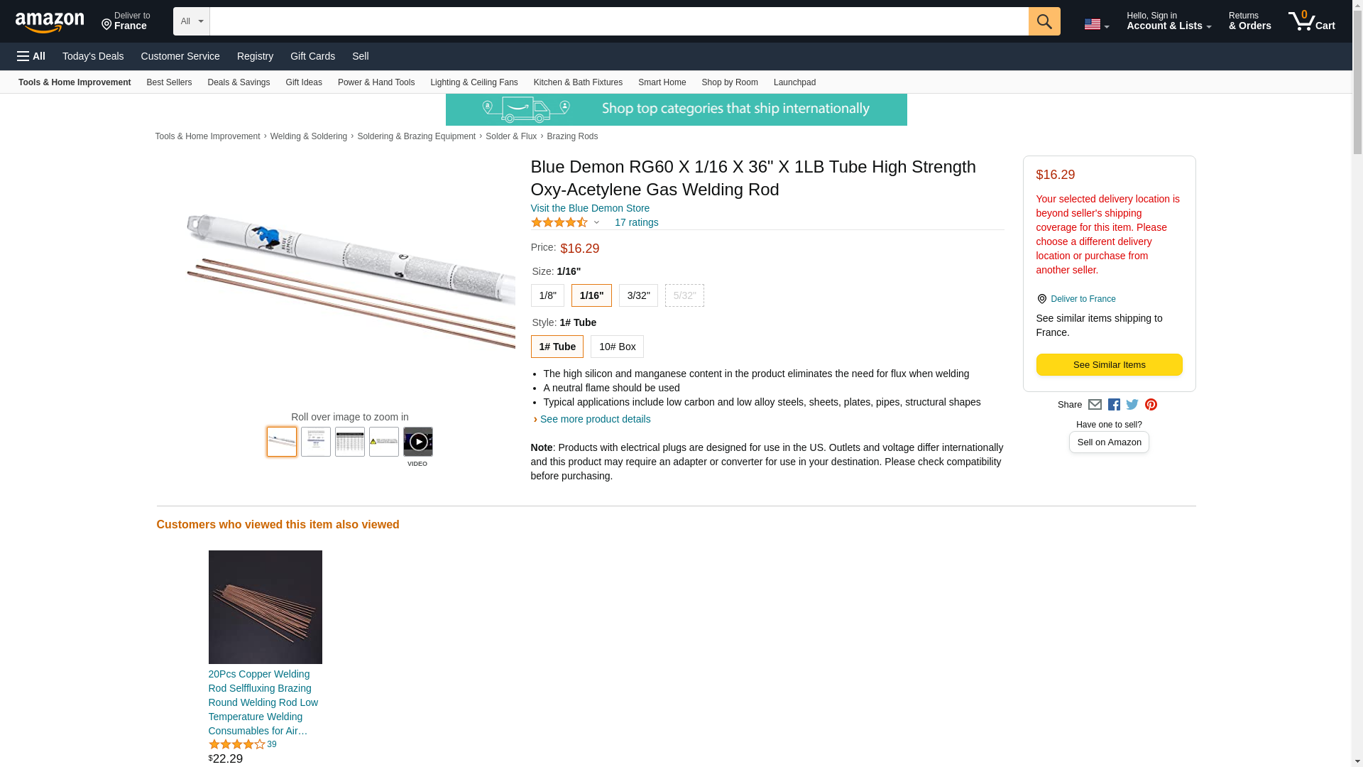 Blue Demon RG60 X 1/16 X 36" X 1LB Tube High Strength Oxy-Acetylene Gas Welding Rod