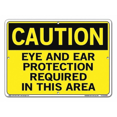 Vestil SI-C-54-C-AL-040 EYE AND EAR PROTECTION REQUIRED IN THIS AREA Caution Sign, Aluminum, 0.040" Overall Size, 14.5" W x 10.5" H
