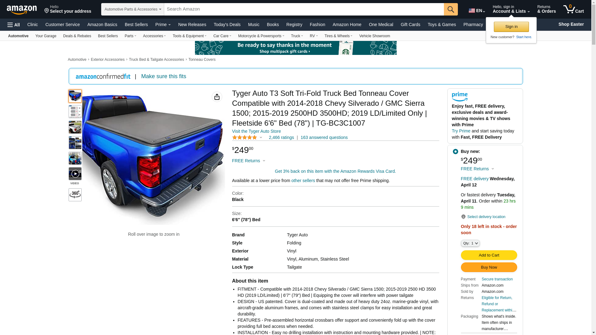 Tyger Auto T3 Soft Tri-Fold Truck Bed Tonneau Cover (6'6") Chevrolet Silverado | GMC Sierra 1500|2500|3500 2014-2019 | TG-BC3C1007