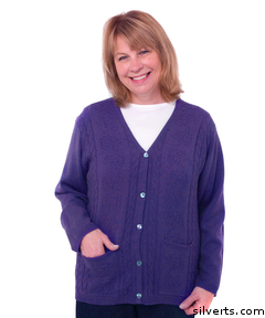 Silverts 270811407 Womens Adaptive Clothing - Acrylic Cardigan With Pockets - 3Xl, Deep Purple
