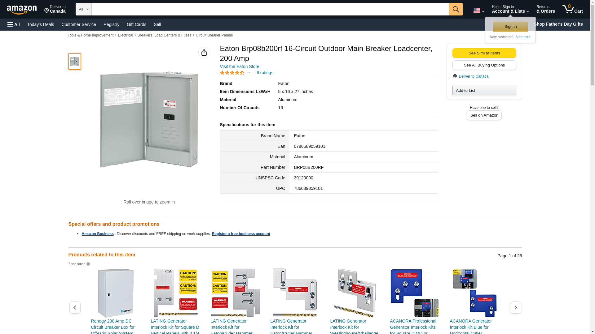 Eaton Brp08b200rf 16-Circuit Outdoor Main Breaker Loadcenter, 200 Amp