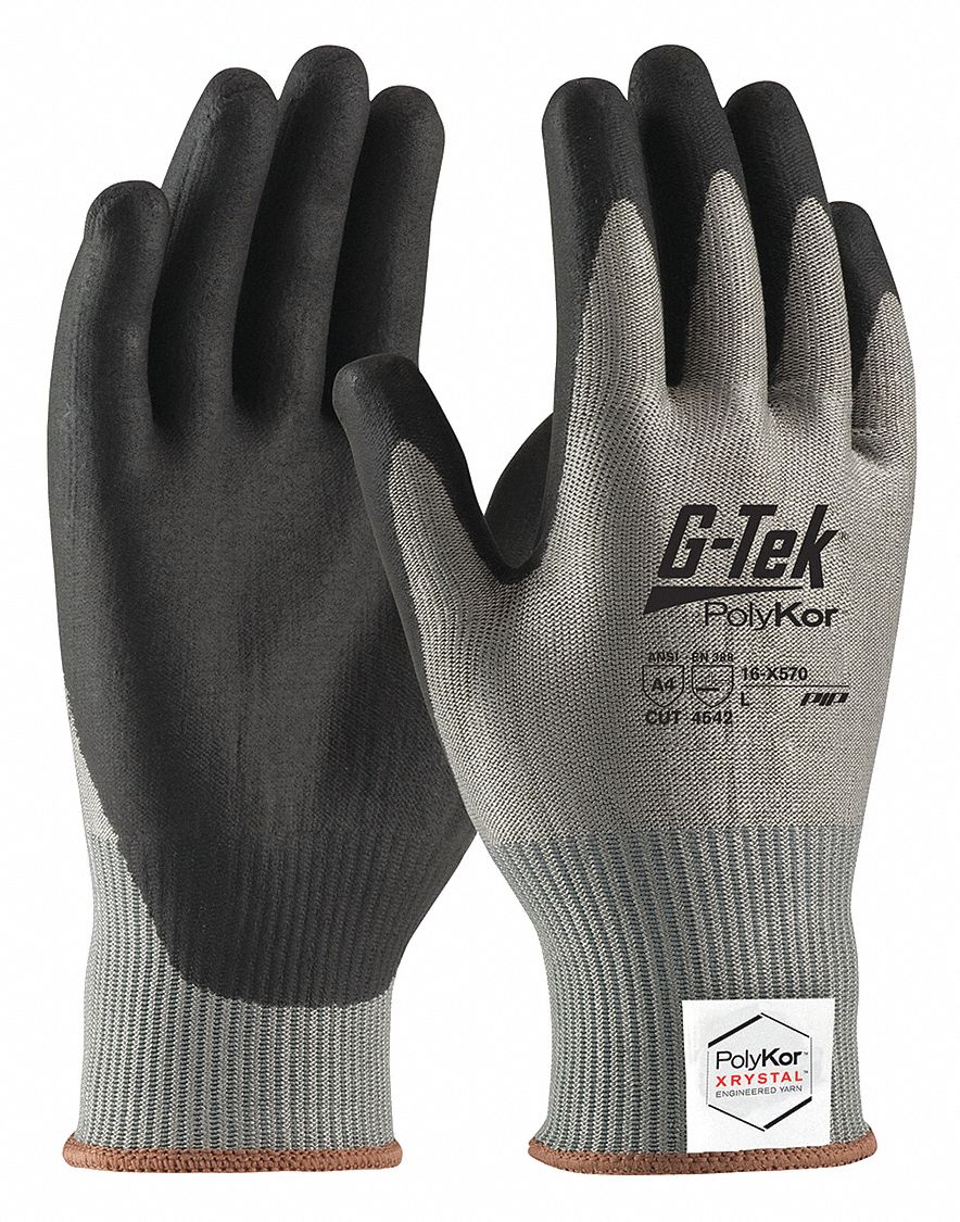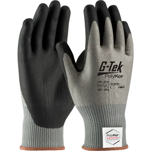 PIP G-Tek® CR Polyurethane Gray Grip Gloves, HPPE/Glass Liner, Black Palm/Fingers, XL, 12 Pairs