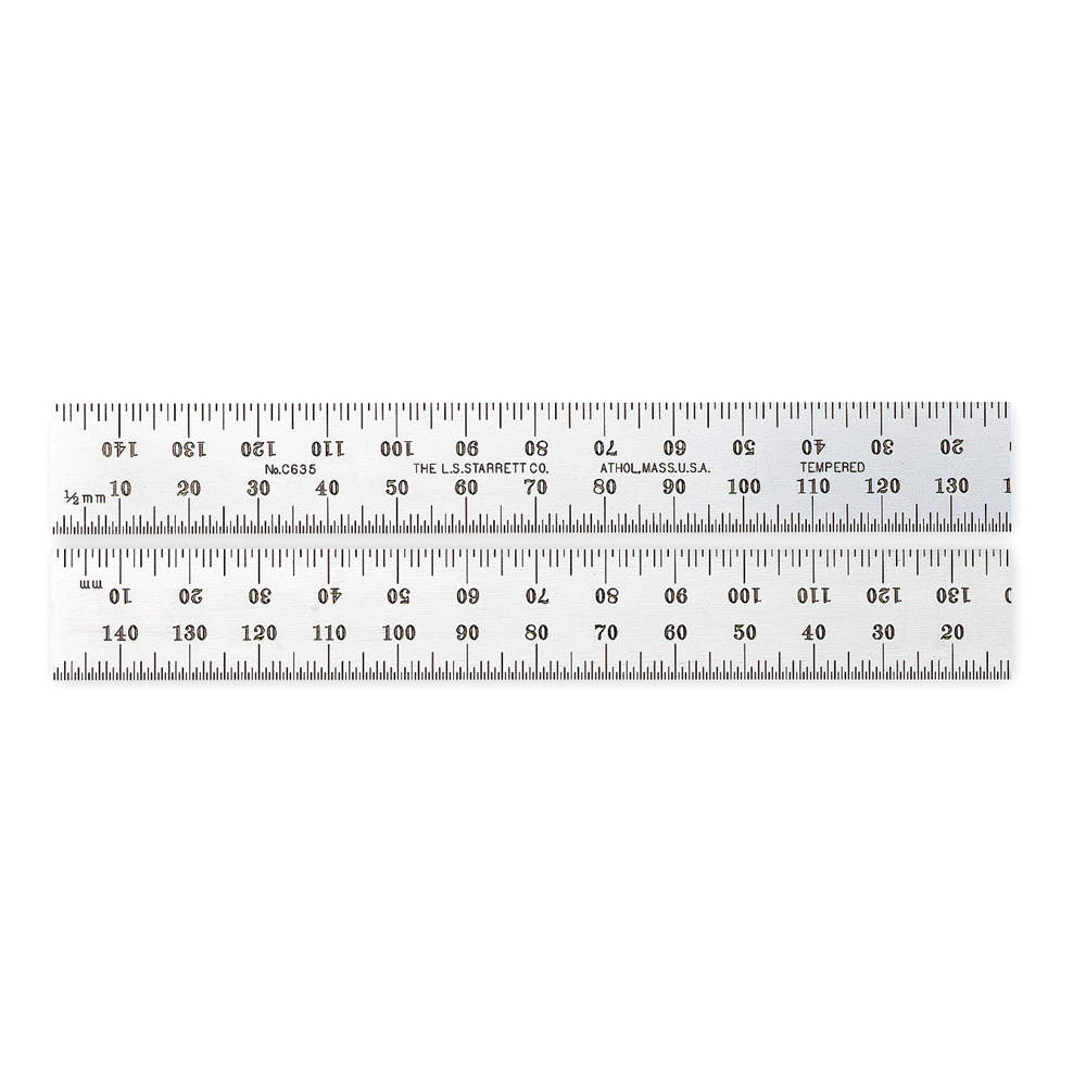 - Graduations in millimeters and half millimeters on both sides are photo engraved for accuracy and staggered in a height pattern for readability