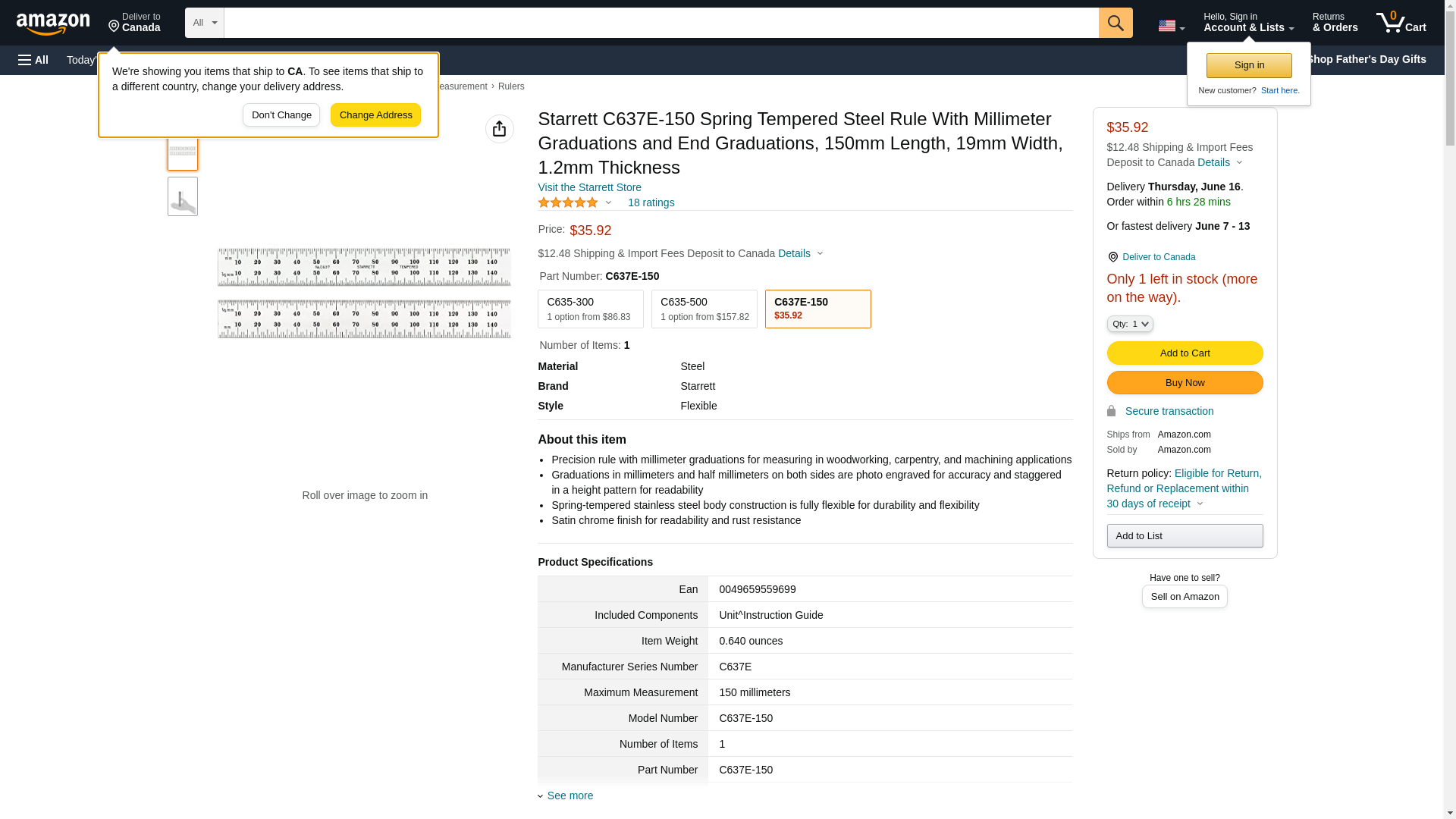 Starrett Steel Rule- Spring-Tempered- 150mm- #37 Grads Rohs Compliant: Na - C637E-150