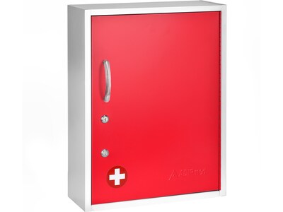 - VERSATILE USE. Ideal for schools, offices, clinics, hospitals and homes, this cabinet is a secure way to store medical supplies and medicine. Choose among red, blue, white and green, scratch-resistant finishes.