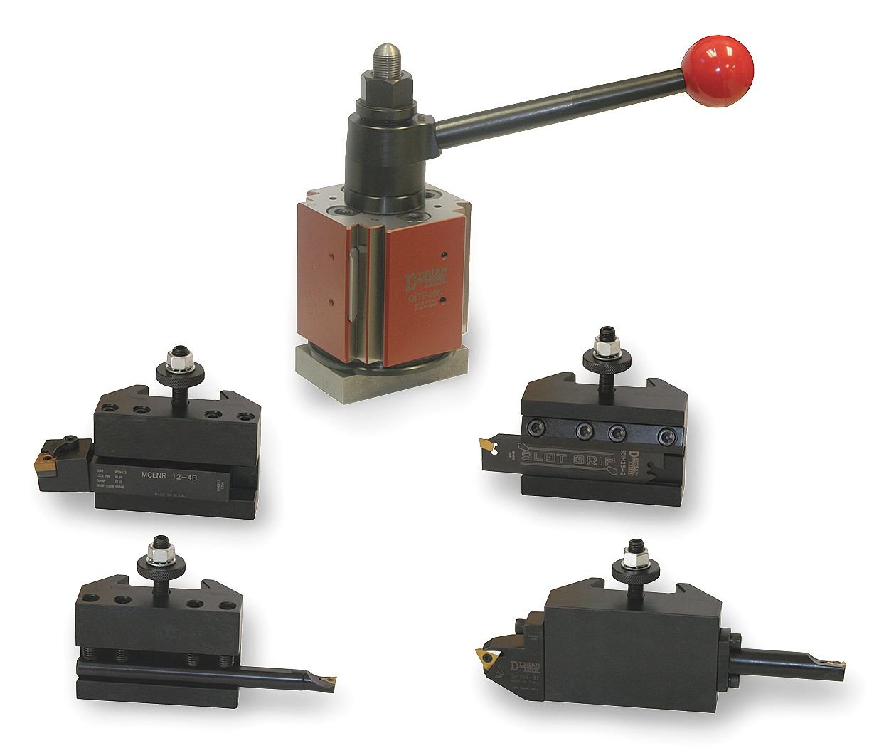 Tool Post Holder Set First Time Buyer Number of Pieces 14 Series QITP35N Includes 3FGF5 Tool Post 3FGN5 Turning/Facing Tool Holder 3FGN6 Turning/Facing/Boring Tool Holder 3FGP3 Reversible Cut-Off Tool Holder 3FGP6 O.D./I.D. Tool Holder STNCR12-3B STCMB10-2 SGIH26-3 NL75R Indexable Toolholders TCMT-32.51-UM-DVP656 TCMT-21.52-UM-DVP656 SGTN-3-DVP656 TNMC-32NV-DVP656 16IR-A60-DVP656 Inserts
