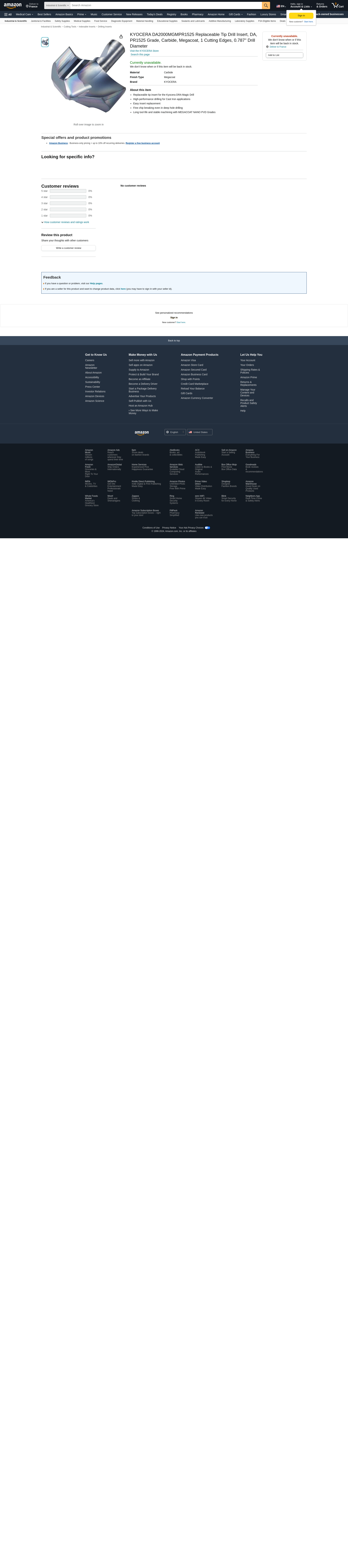 KYOCERA DA2000MGMPR1525 Replaceable Tip Drill Insert, DA, PR1525 Grade, Carbide, Megacoat, 1 Cutting Edges, 0.787" Drill Diameter