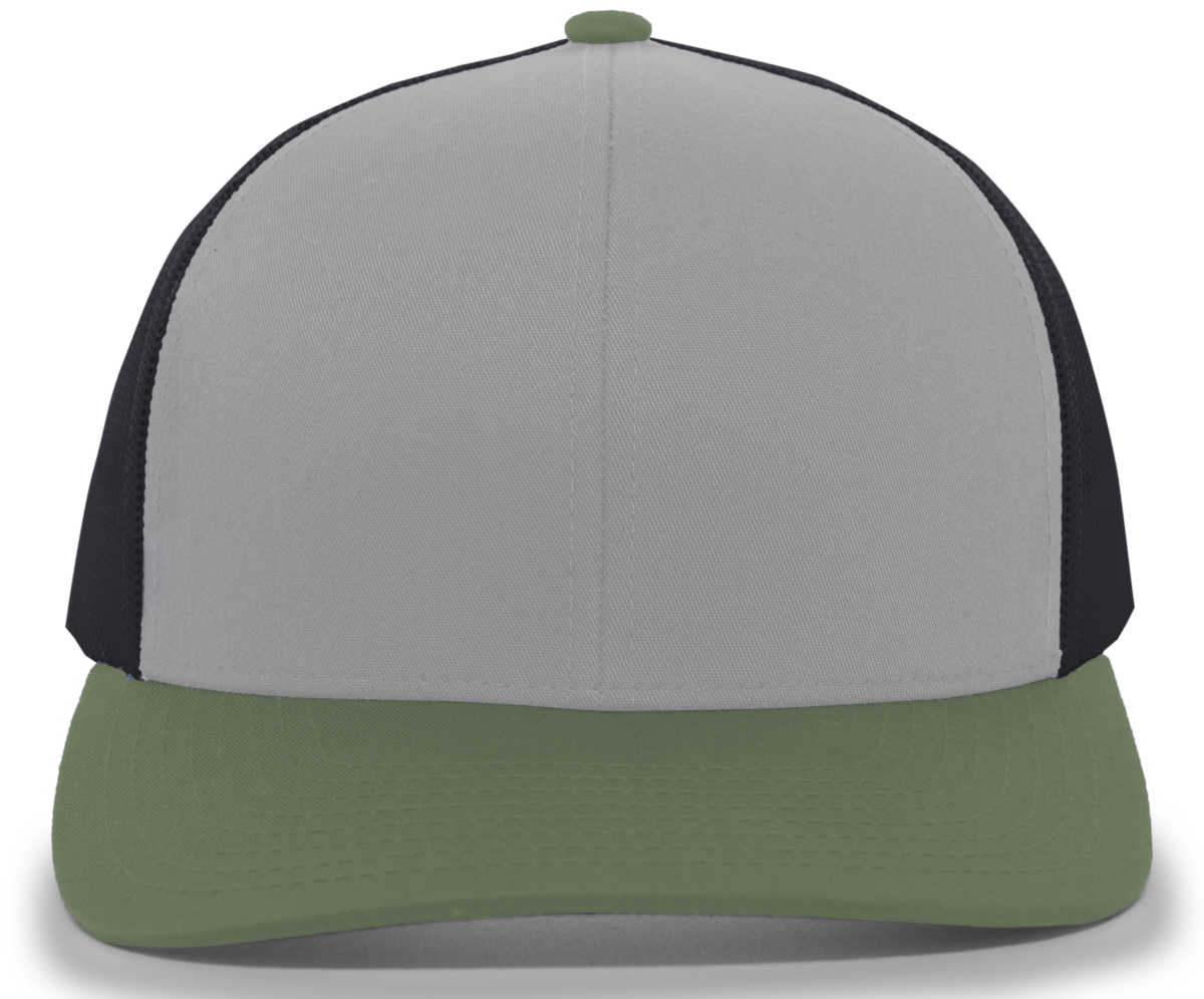 Pacific Headwear 104C.35P.OS Trucker Snapback Cap - Heather Gray, Light Charcoal & Moss Green - One Size