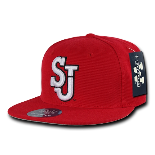Features. Freshman Fitted College Cap is a 6-panel. Material - 100 Acrylic. High Definition 3D-Embroidery. Represent Your School. Retro Flat Bill. Fitted Cap. Officially Licensed Imported. Logo - St Johns. Color - RED. Size - 7. Item Weight - 0.35 lbs.