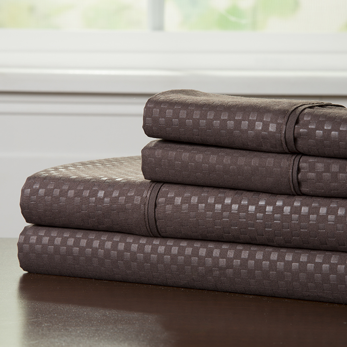 Brushed Microfiber Sheets Set- 4 Piece Hypoallergenic Bed Linens with Deep Pocket Fitted Sheet and Embossed Design by Lavish Home (Chocolate, King)