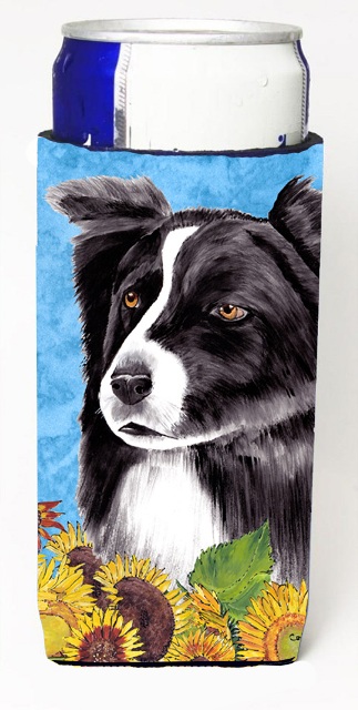 Caroline's Treasures SC9071MUK Border Collie in Summer Flowers Ultra Hugger for slim cans Can Cooler Sleeve Hugger Machine Washable Drink Sleeve Hugger Collapsible Insulator Beverage Insulated Holder