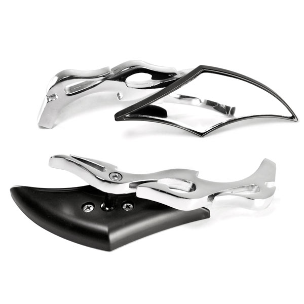 Krator Black/Chrome Twisted Flame Rearview Mirrors Motorcycle Cruiser + Bolts Compatible with Most Harley Suzuki Honda Kawasaki Cruisers Touring Sportbike Scooters Rear View - Free Adapters