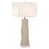 1219-ASL-2189 Thumprints Geo - Ivory - Off White Square Shade Ceramic and Acrylic Table Lamp in Ivory Gloss with Off White Silk Hardback Shade