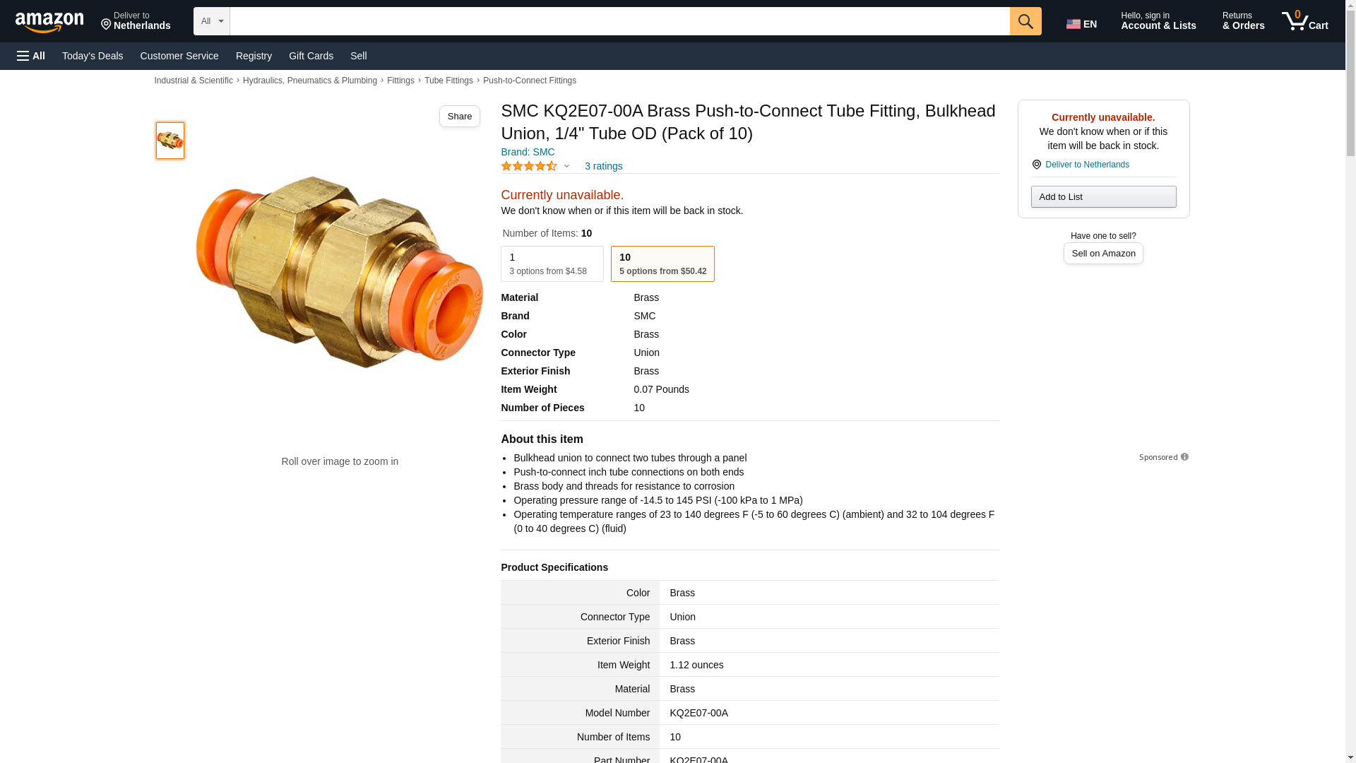 | smcpneumatics.com | KQ2E07-00A | 10 | 31042 | 10 | 1 @ $4.61 |