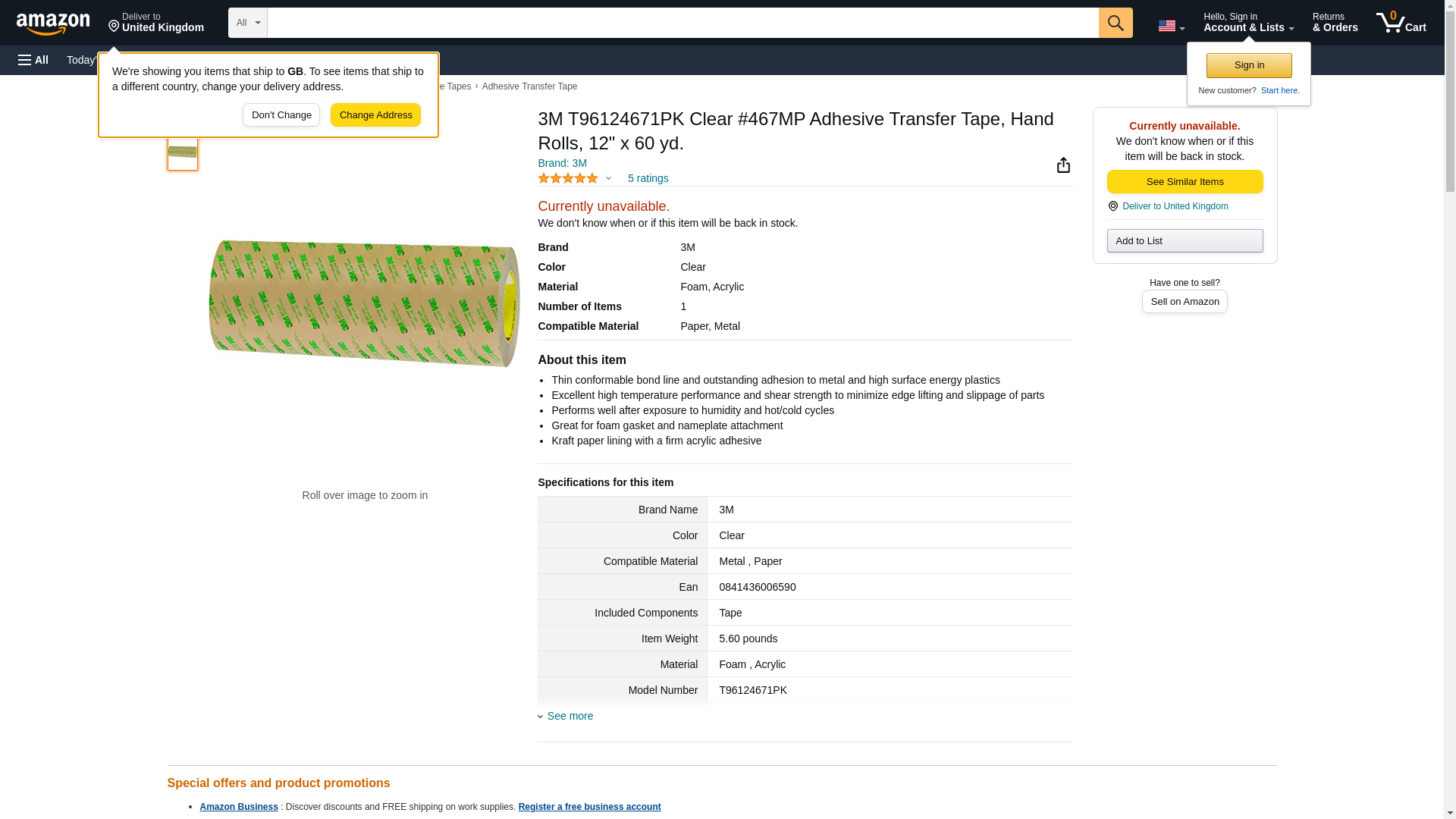 3M T96124671PK Clear #467MP Adhesive Transfer Tape, Hand Rolls, 12" x 60 yd.