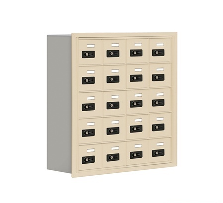 Cell Phone Storage Locker - 5 Door High Unit (8 Inch Deep Compartments) - 20 A Doors - Sandstone - Recessed Mounted - Resettable Combination Locks