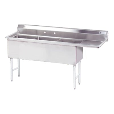 Advance Tabco FS-3-1824-24R Fabricated NSF Sink, 3-Compartment, 24" Right Drainboard, Bowl Size