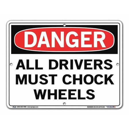 Vestil SI-D-51-B-PS-040 ALL DRIVERS MUST CHOCK WHEELS Danger Sign, Polystyrene, 0.040" Overall Size, 12.5" W x 9.5" H