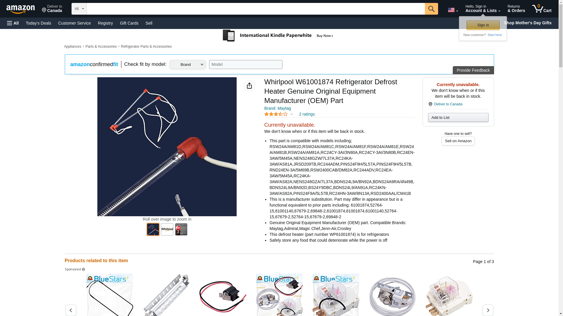 ![]() midwestapplianceparts.com | WP61001874-WPL-P | 1 | -2 | 1 | 1 @ $50.63 |