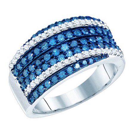 Ladies White Gold Round Cut Blue Genuine Diamond Promise Bridal Band 1.15CT