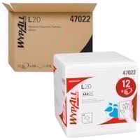 WypAll® General Clean L20 Medium Cleaning Cloths (47022), Quarterfold Format, White, 4-Ply, 12 Packs / Case, 68 Sheets / Pack | Grand & Toy