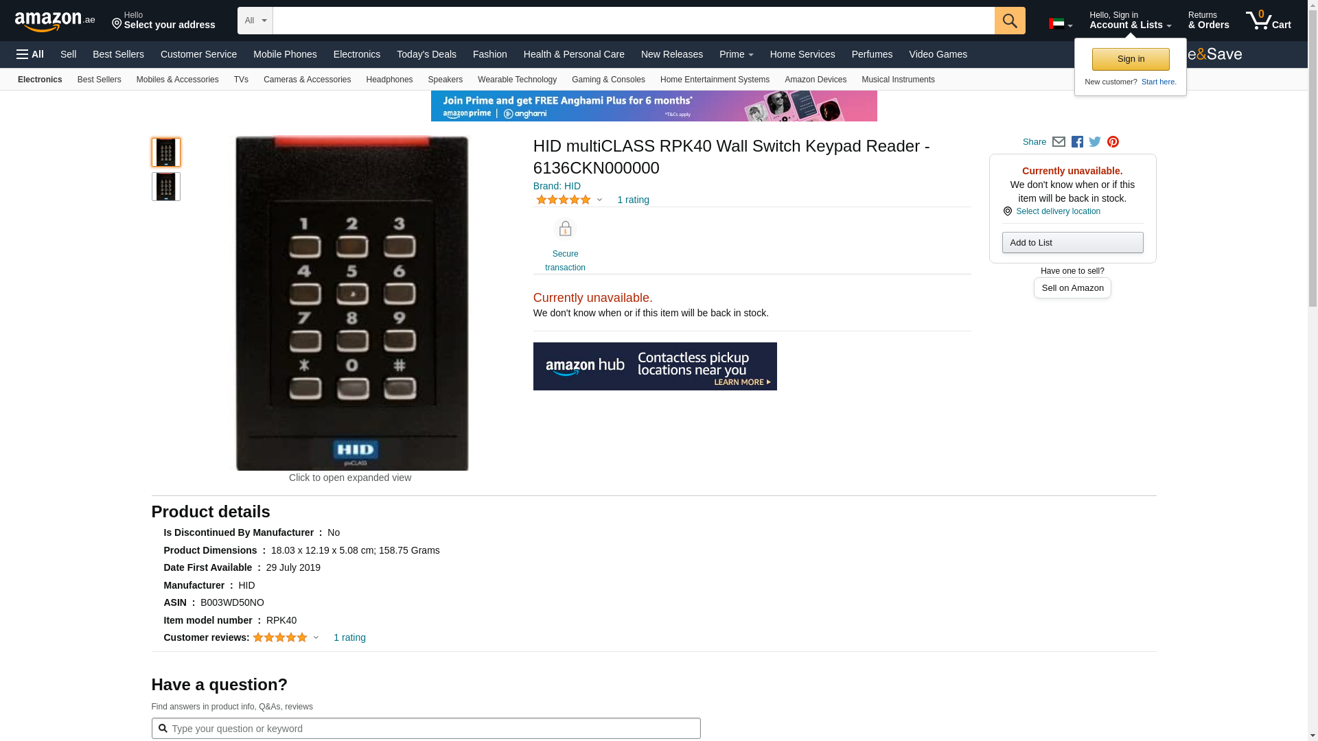 HID Global Corporation multiCLASS RPK40 Smart Card Reader with Keypad 6136CKN000000