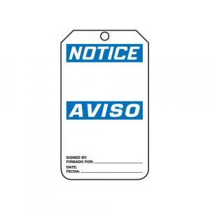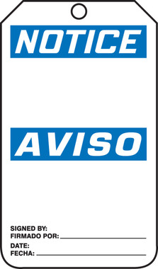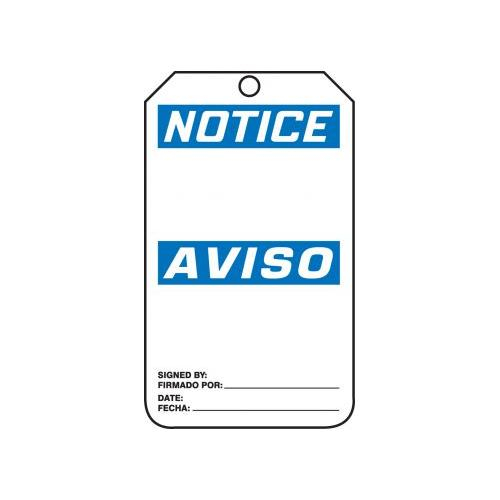 Accuform SBMNT101LTP HS-Laminate Safety Tag, Legend "Notice/Aviso (Blank)", 5.75" Length x 3.25" Width x 0.024" Thickness, Blue/Black on White(Pack of 25)