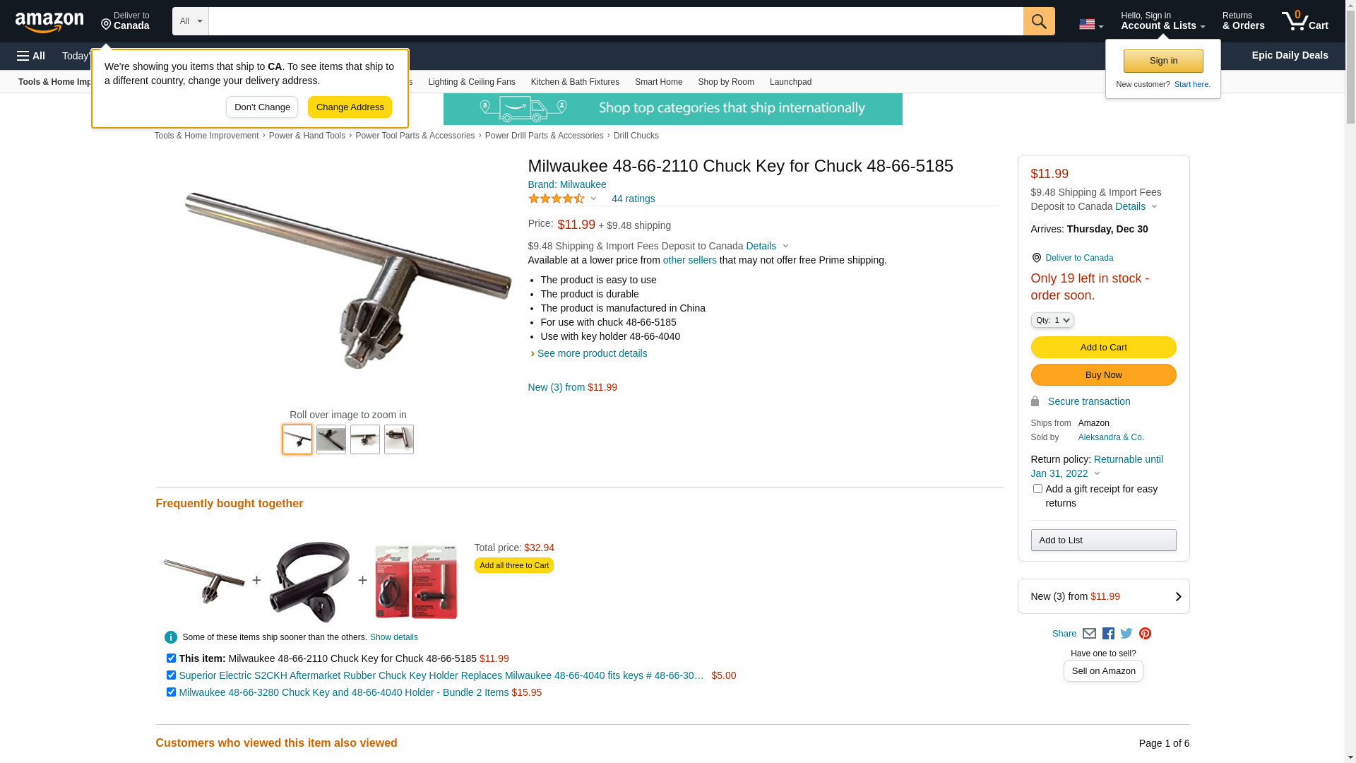 Milwaukee 48-66-2110 Chuck Key for Chuck 48-66-5185