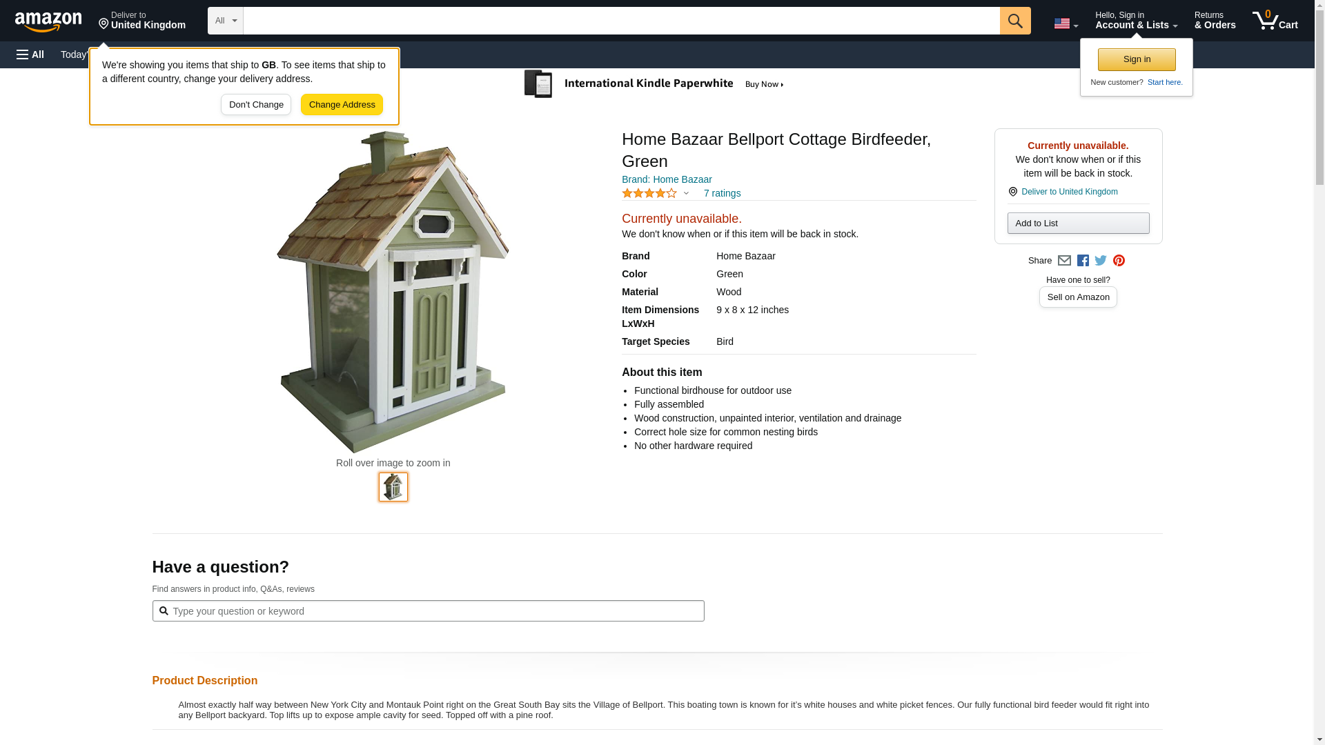 Home Bazaar Bellport Cottage Birdfeeder, Green