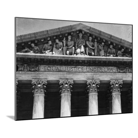 <ul> <li>Title: Pediment of the Supreme Court</li> <li>Product Type: Wood Mounted Photographic Print</li> <li>Provides a clean edge for a contemporary look</li> <li>Arrives ready-to-hang</li> <li>Built-in brace that lifts artwork off the wall for a floating effect</li> <li>Handcrafted in the USA</li> </ul>