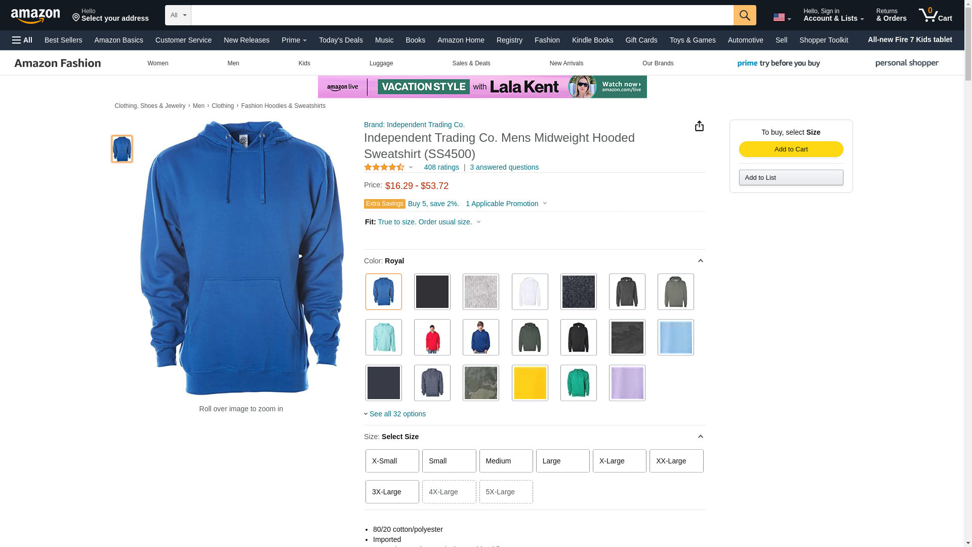 Independent Trading Co. Men's Midweight Hooded Sweatshirt - -S Small Royal