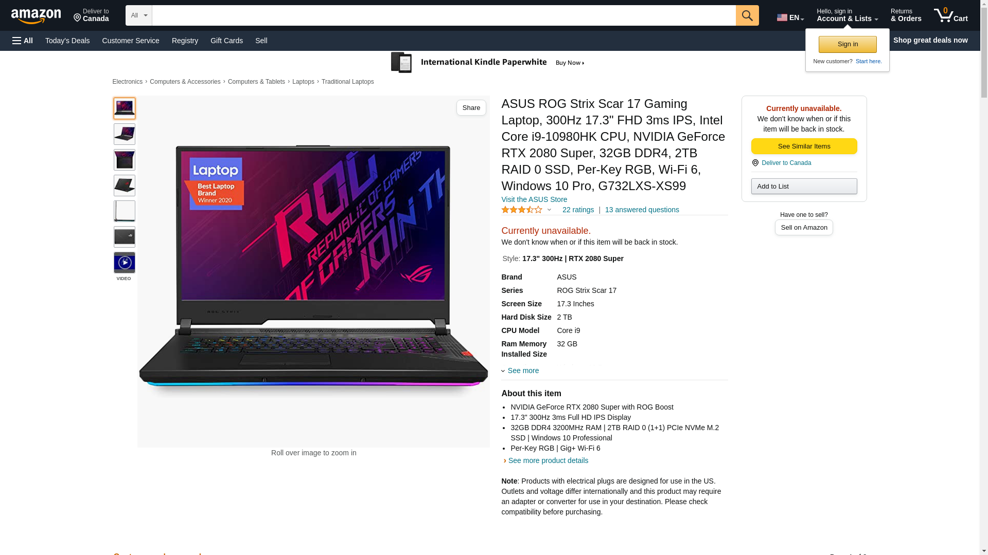 ASUS ROG Strix Scar 17 Gaming Laptop, 300Hz 17.3" FHD 3ms IPS, Intel Core i9-10980HK CPU, NVIDIA GeForce RTX 2080 Super, 32GB DDR4, 2TB RAID 0 SSD, Per-Key RGB, Wi-Fi 6, Windows 10 Pro, G732LXS-XS99