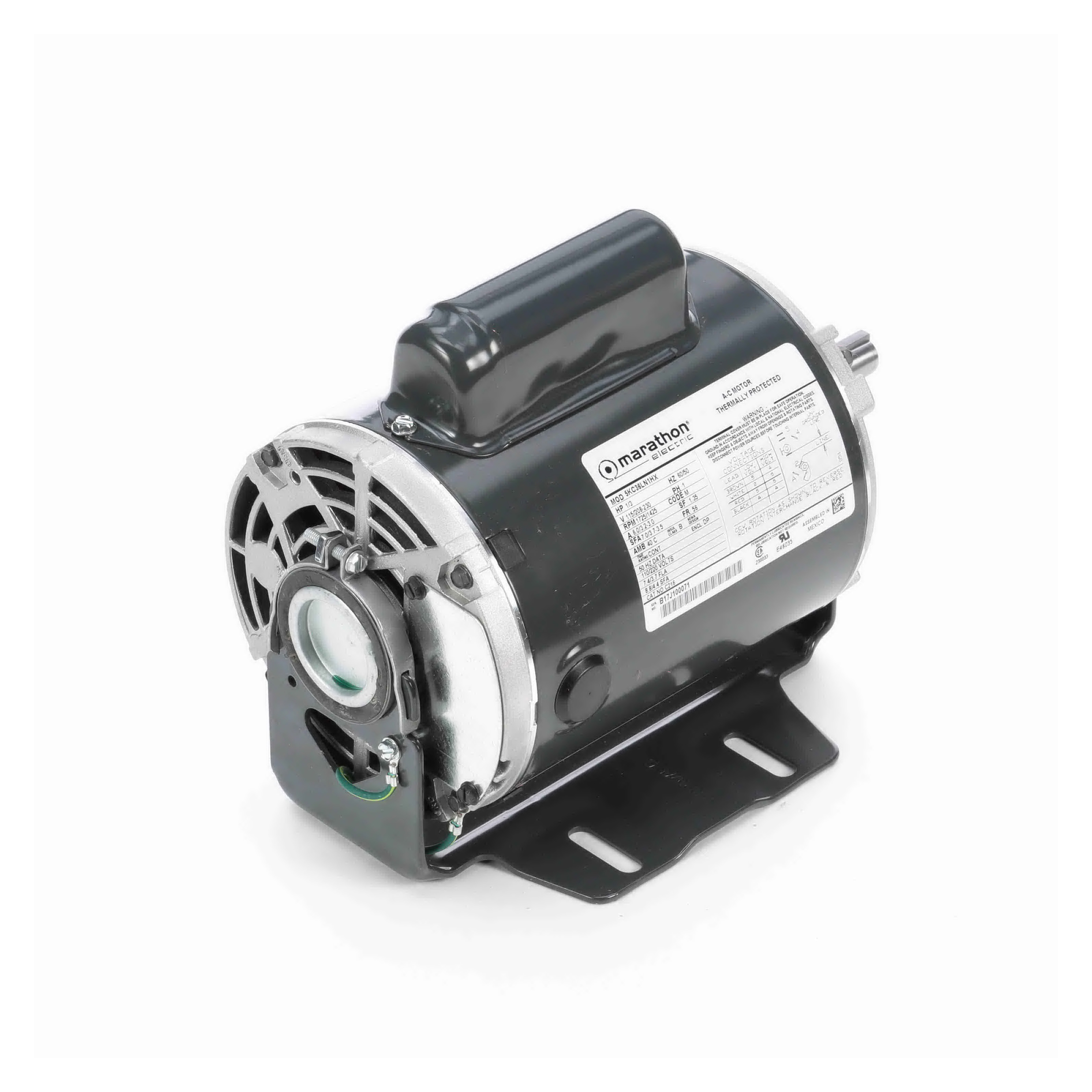 Marathon 5KC36LN1X, General Purpose Motor, 33/100 HP, 115/208-230 Volts, 3.0 Amps, 1 Phase, 1725 RPM, 60 Hz, ODP Enclosure, 56 Frame, Resilient Base, Footless Mounted, Rolled Steel Frame, Catalog No: C216