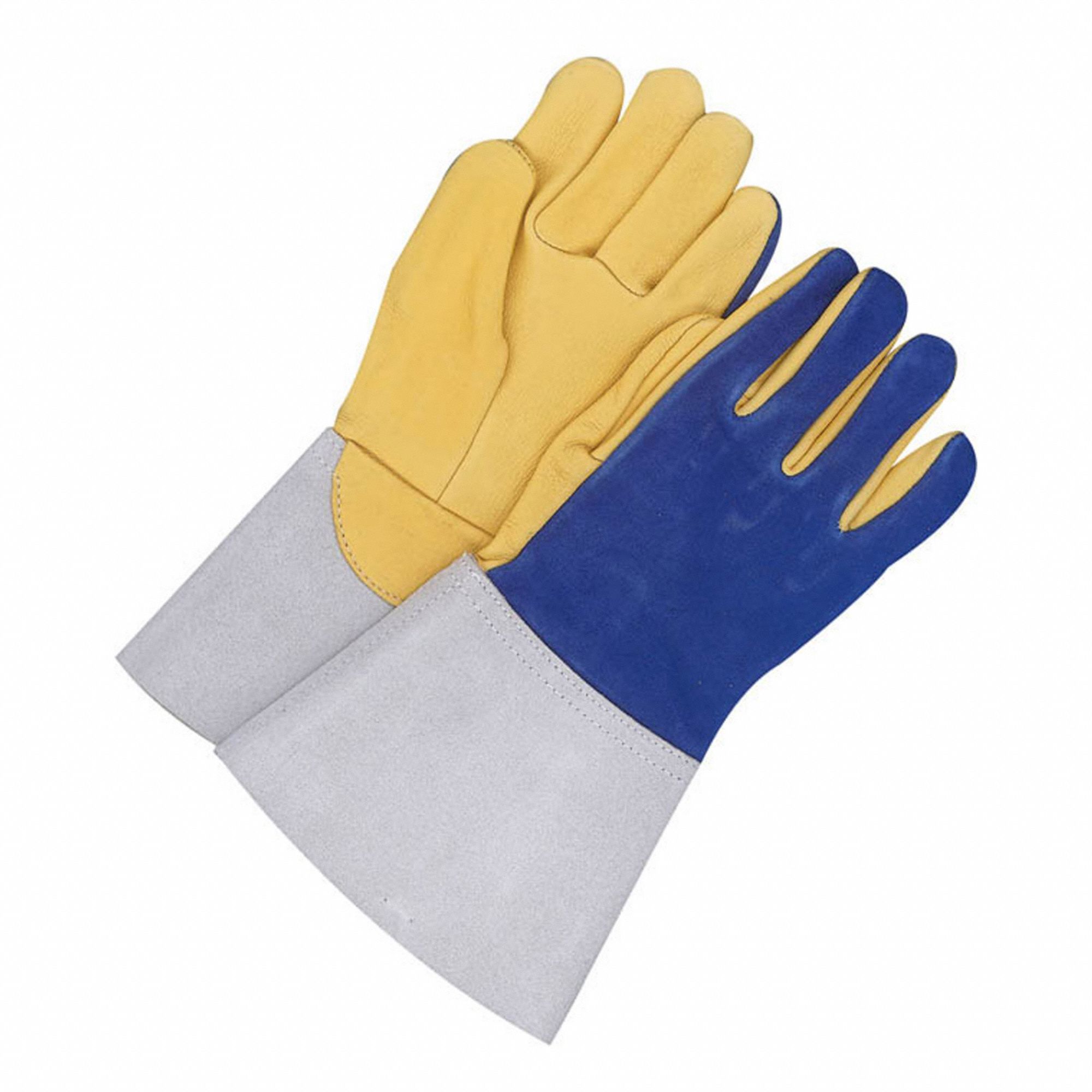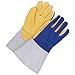Bob Dale 64-1-777D-8 Premium Grain Deerskin Palm Split Back Mig/Tig Welder Glove, Size 8, Blue/Tan