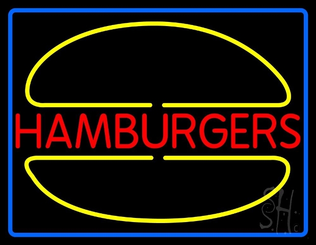 Sign Store N105-4549 31 x 3 x 24 in. Hamburgers Logo Border Neon Sign - Red, Yellow And Blue