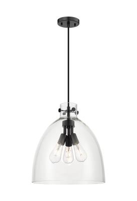 Innovations Lighting 410-3PL-BK-G412-16CL Newton Bell - 3 Light Pendant in Industrial Style-17.38 Inches Tall and 16 Inches Wide, Finish Color: Matte Black, Glass Color: Clear