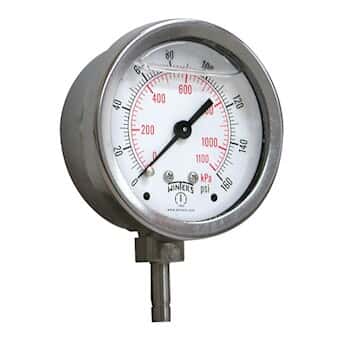 Winters Instruments PTS826-TS Tube Stub Gauge, Stainless Steel, 2-1/2" Dial, 200 psi