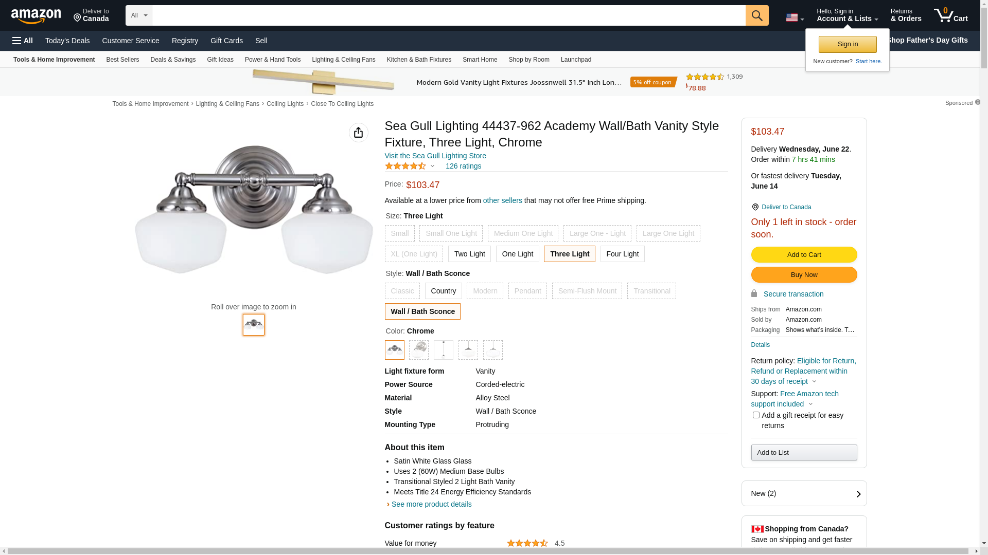 | Manufacturer | Sea Gull Lighting |