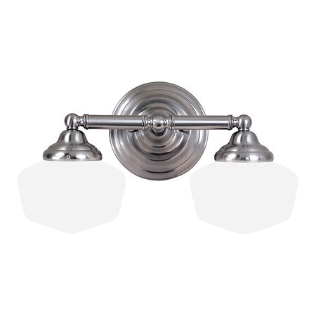 Sea Gull Lighting Academy Brushed Nickel 17.25 in. 2-Light 60W Medium Base Satin White Glass Bath Fixture