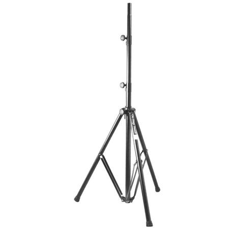 - Durable. Heavy-duty steel and aluminum construction provides outstanding strength for dependable support of lights and powered and unpowered speakers weighing up to 140 pounds.